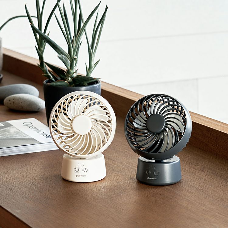 PBAF005 plusmore(プラスモア) ラウンドミニデスクファン 首振り機能付