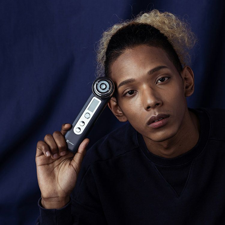 イオン導出、イオン導入、青LED、赤LED、振動、マイクロカレント、EMS、RFの機能を搭載。CLEAN(イオン導出)・ABSORB(イオン導入)・EMS・RF REDの4つのモードで、自宅で本格ケアが可能に。