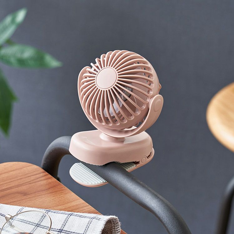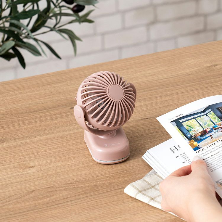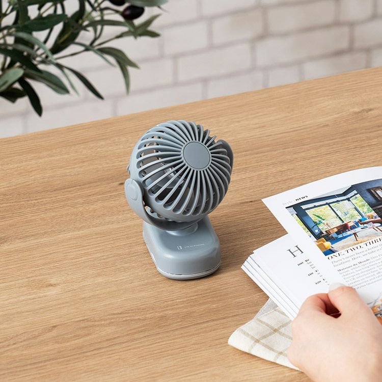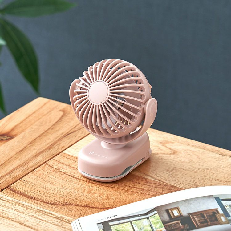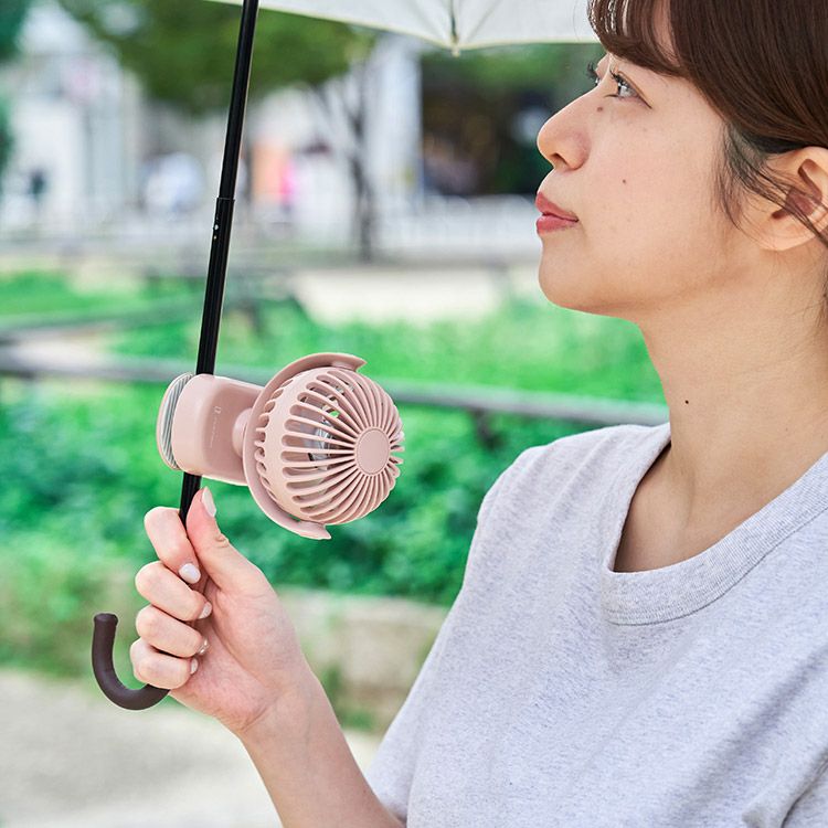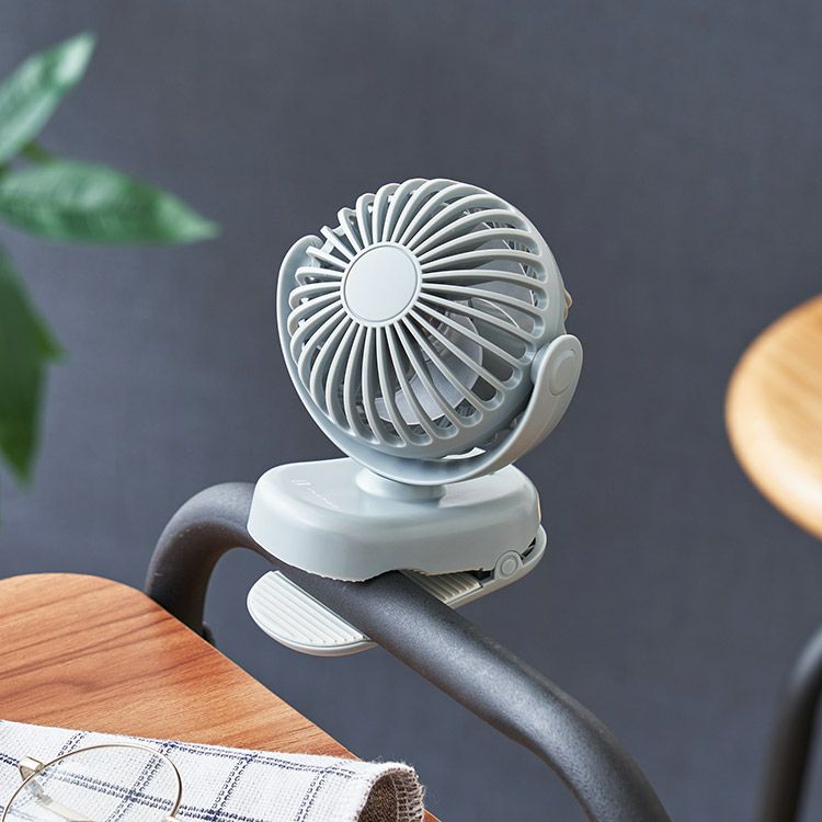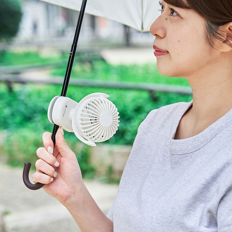 丸いフォルムと手のひらサイズがかわいい、持ち運びに便利なクリップファン。ミニサイズながらパワフルな風量で、ポールやワゴン、ラックにクリップで留めて快適な風を送ることができます。ファンのクリップは日傘にも使用でき、猛暑日のお出かけにも大活躍。風向きは約320°、風量は3段階の調節ができ、シチュエーションに応じた使い分けも可能。クリップ部分はスタンド代わりにもなり、使い勝手の良さも特長です。