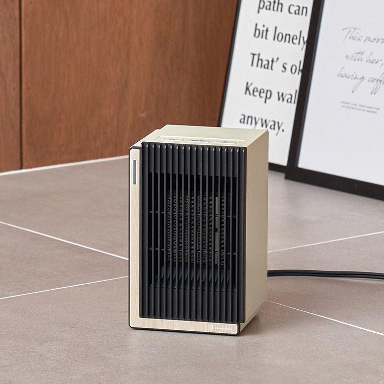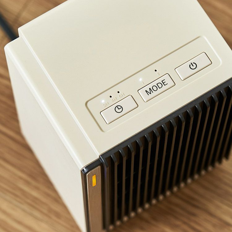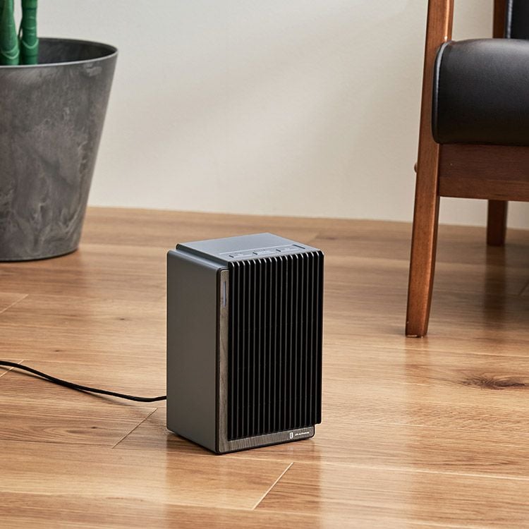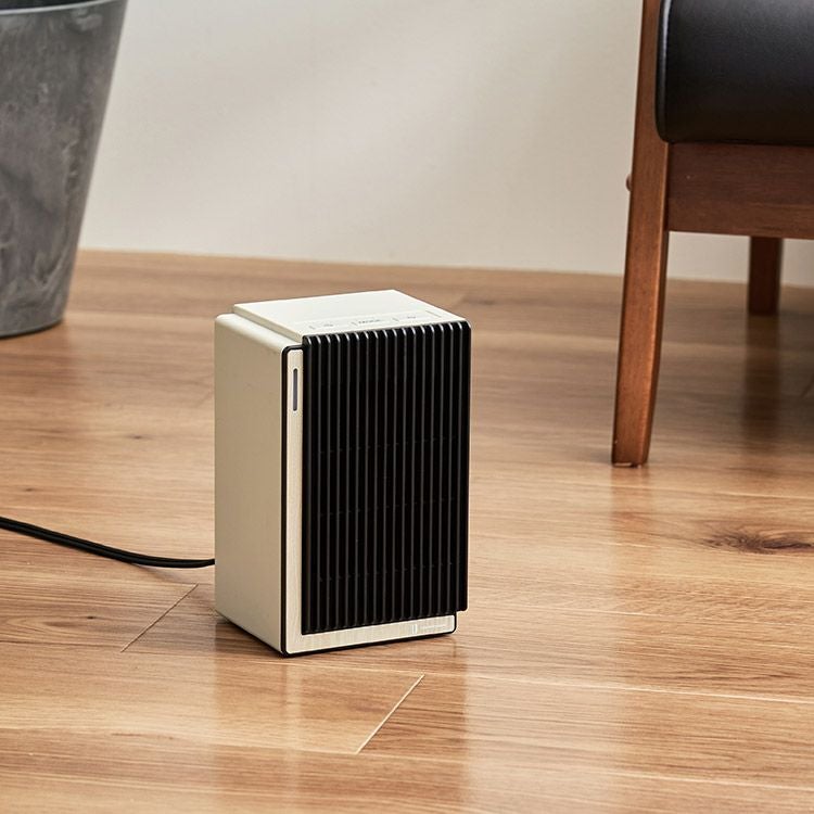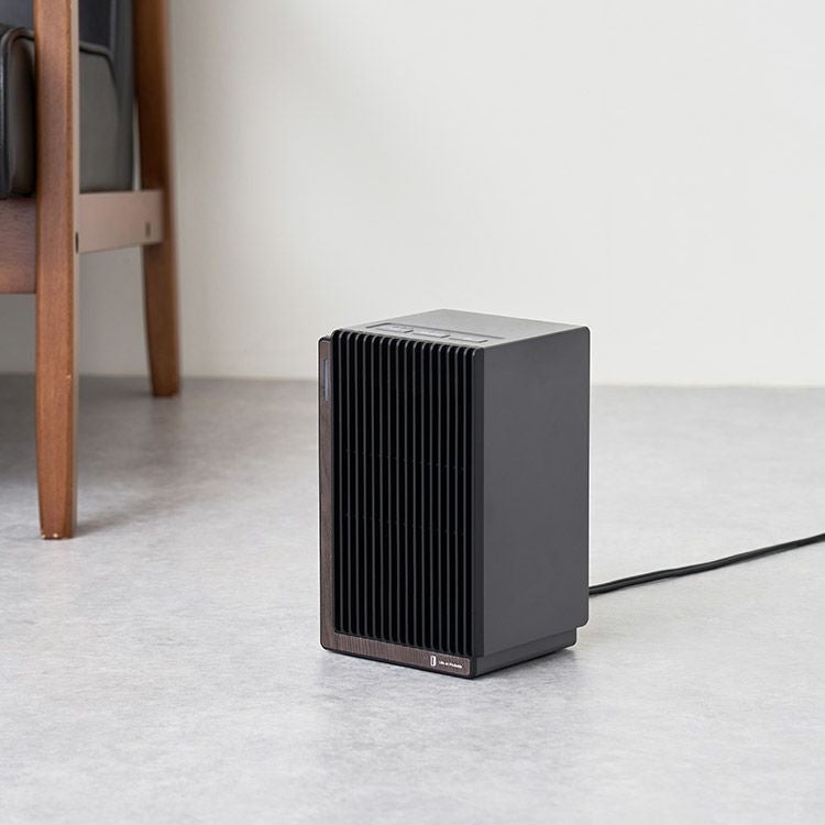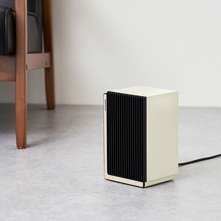 1000Wのハイパワーで速暖を実現するパワフルなファンヒーター。脱衣所やキッチンなど冷えがちな場所を素早く暖め、設置しても邪魔にならないコンパクトなサイズ感が魅力です。インテリアに調和するよう、前面にあしらった高級感あるリアルな木目柄は、高精細な意匠表現技術をもつ大日本印刷株式会社との協業で実現しました。オートオフ機能やタイマー設定、転倒時自動オフ機能など、安全性と利便性にもこだわった頼れるヒーターです。