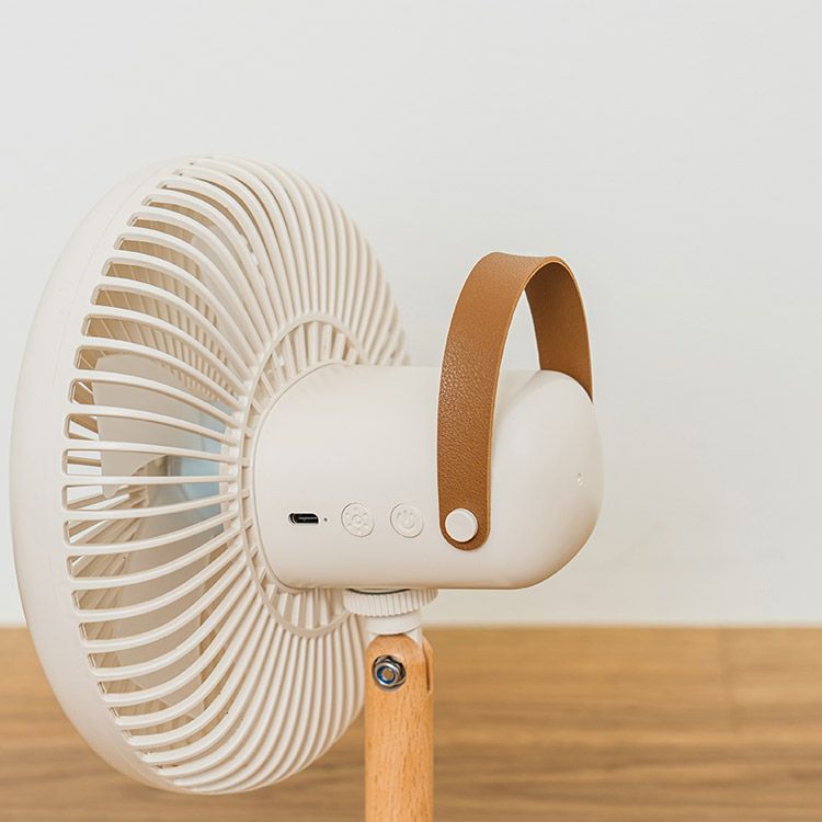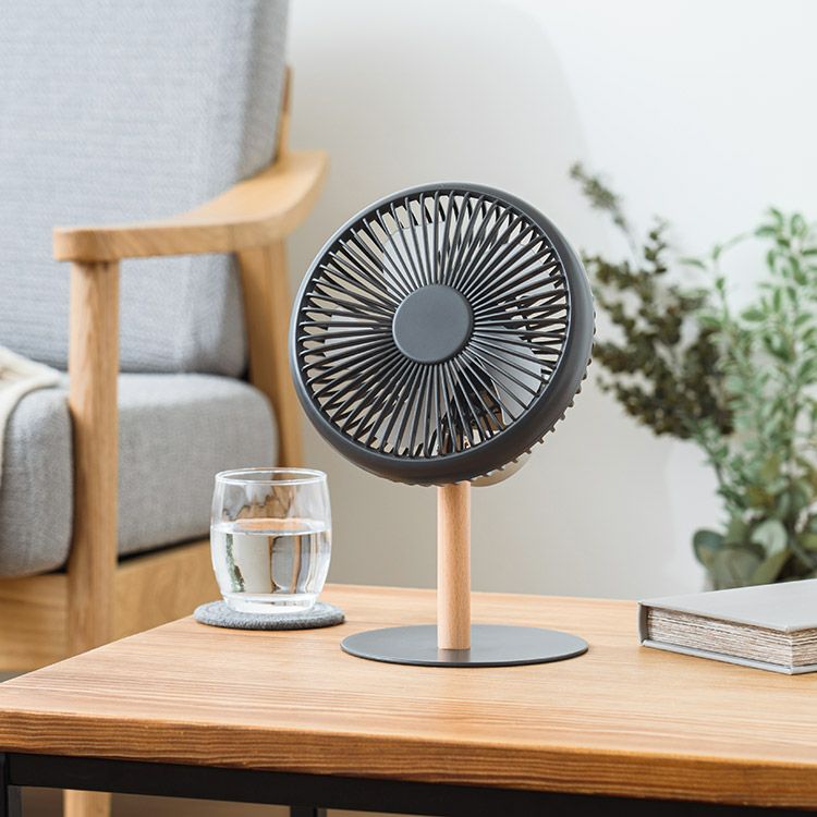 支柱部分にリアルウッドをあしらい、ナチュラルテイストでもモダンインテリアにも馴染む、コンパクトなリビングファン。デスク、吊り下げの2WAY仕様で、設置場所の環境に合わせて使用が可能です。コードレス設計で持ち運びやすいよう背面にはハンドルを配置。LED付きのため、アウトドアでの利用にも活躍します。